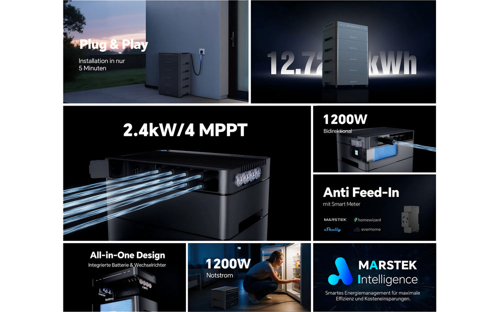 Ermöglicht sowohl Netzladung als auch Rückspeisung für flexibles Heim-Energiemanagement.