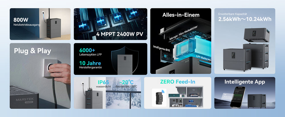Durch die nahtlose Integration von Batterie, BMS und Mikroumrichter in eine einzige Einheit vereinfacht dieses innovative Design die Systemarchitektur und reduziert erheblich den Energieverlust, wodurch hocheffiziente Netzanschlüsse leicht erreichbar sind.