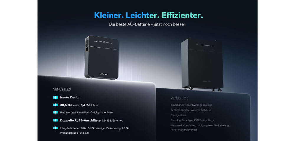 Venus Gen 3.0 unterstützt bis zu drei Geräte in einer einphasigen Konfiguration – für eine skalierbare Leistung und Speicherkapazität von bis zu 7,5 kW und 15,36 kWh. Entwickelt für maximale Flexibilität und echte Anforderungen.*Die Erweiterung hängt von der Kapazität Ihres elektrischen Hausanschlusses ab. Bitte wenden Sie sich vor der Installation an eine zertifizierte Elektrofachkraft.